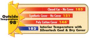 "Cool & Dry" is the key phrase that describes your car when it's shielded by Coverite's new 3 layer Car Cover. Coverite combined "high tech space age" reflective fabric technology with innovative design to create the near perfect car cover. This process creates a superior, reflective, breathable fabric that is extremely lightweight, strong, durable, water repellent, rot and mildew proof and stays pliable in all weather conditions. Silvertech's highly reflective surface provides maximum protection from sun and UV exposure while keeping your car cooler inside and out.